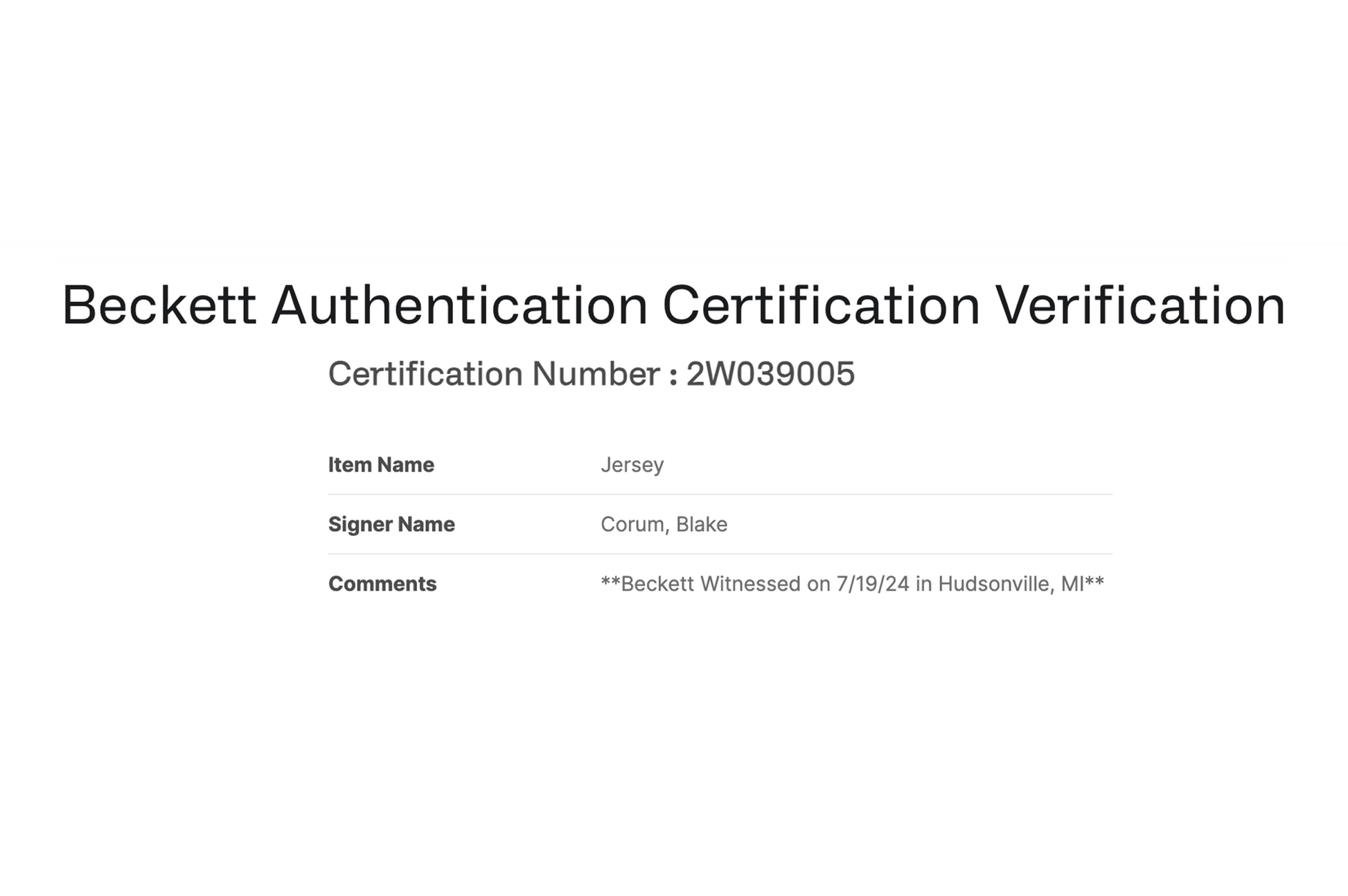 This Autographed Custom Black Las Vegas Jersey has been Personally Signed by Blake Corum of the Michigan Wolverines. It is 100% Authentic and includes a Beckett Authentication Scannable QR Code and Numerical Sticker. A Beckett Authenticator witnessed the signing of this item on 7/19/24 in Hudsonville, MI.