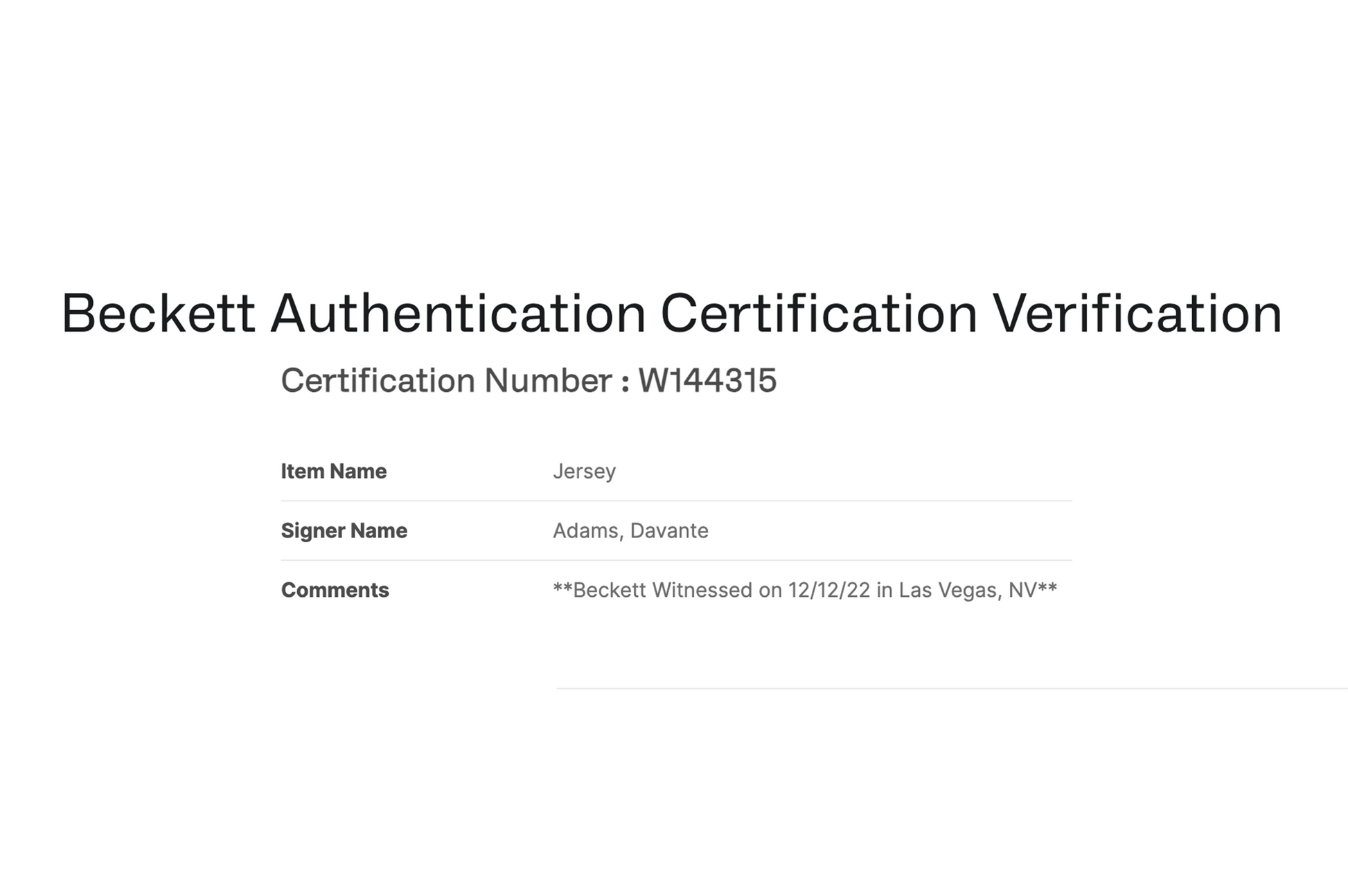 This Autographed Custom XL Black Las Vegas Jersey has been Personally Signed by Davante Adams of the Las Vegas Raiders. This item is 100% Authentic and includes a Beckett Authentication Scannable QR Code and Numerical Sticker. A Beckett Authenticator witnessed the signing of this item on 12/12/2022 in Las Vegas, NV.