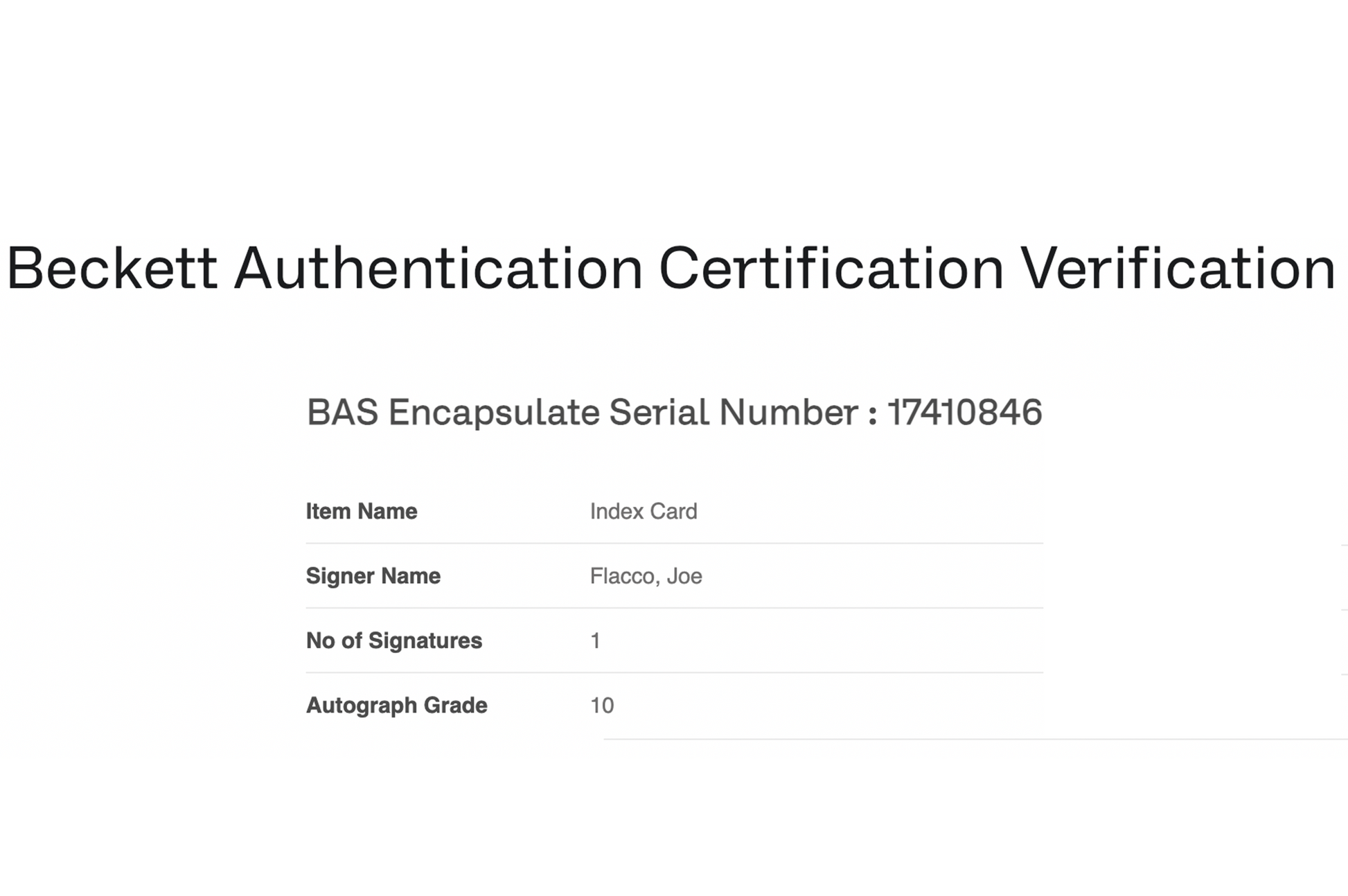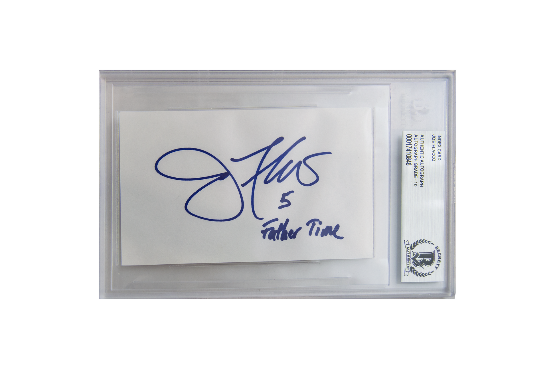 This 7x4 Joe Flacco Encapsulated Slab Autograph has been Personally Signed by Joe Flacco. It is 100% authentic and includes a Beckett Authentication Numerical Label.