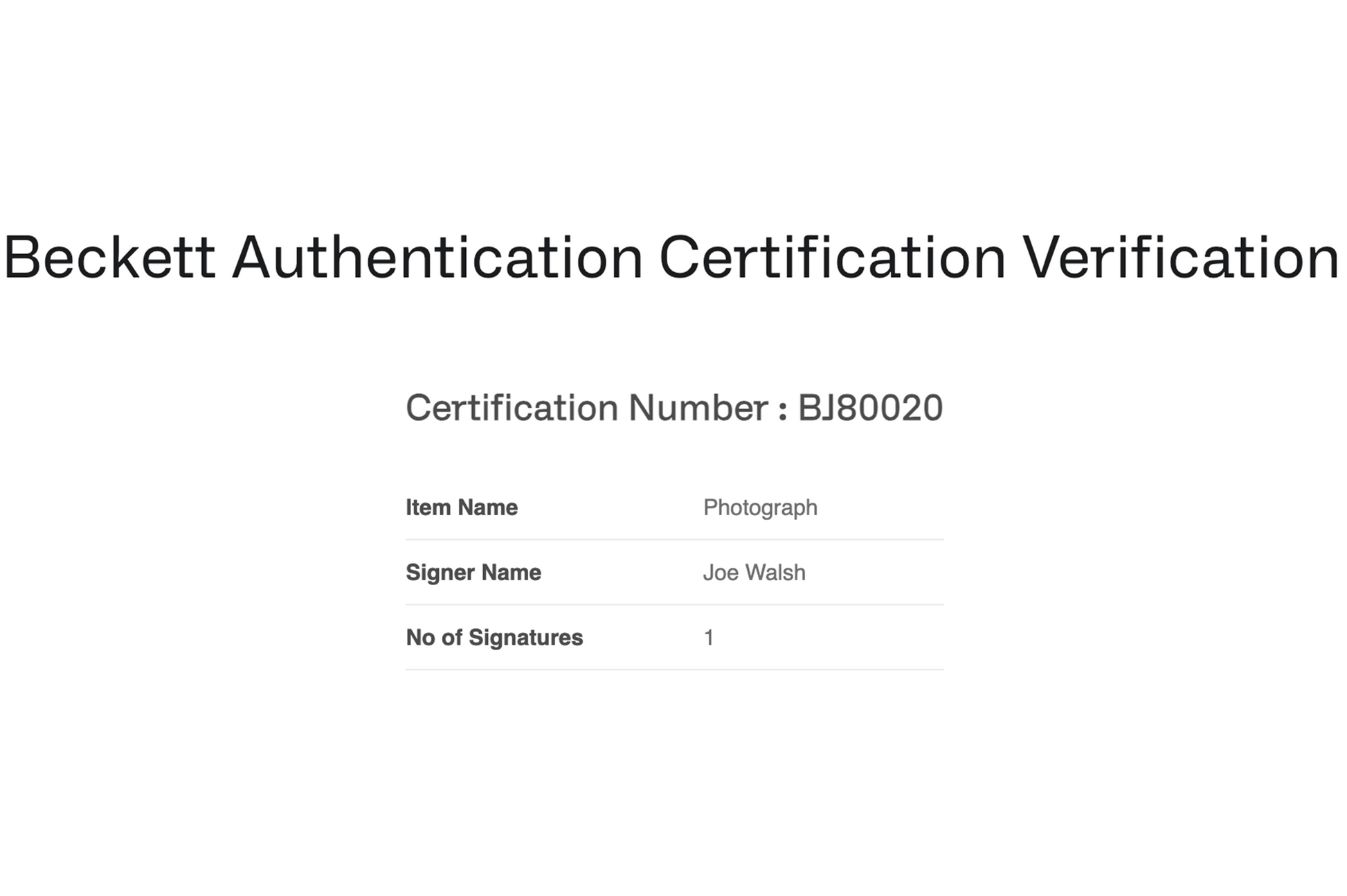 This Autographed 5x7 Picture has been Personally Signed by Joe Walsh of The Eagles. This item is 100% Authentic and includes a Beckett Authentication Scannable QR Code and Numerical Sticker.