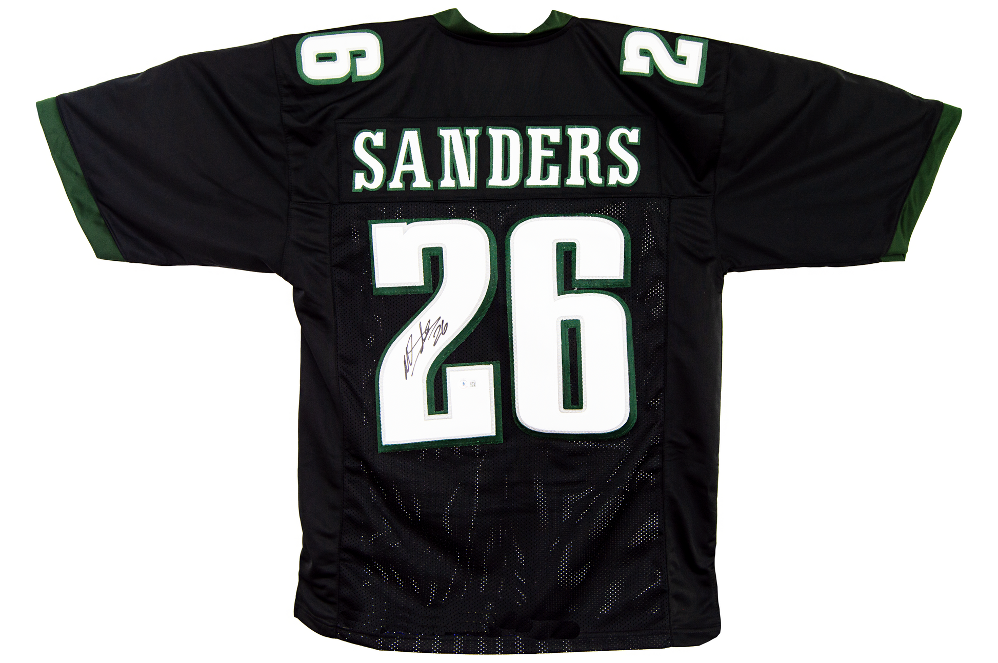 This Autographed Custom XL Philadelphia Jersey has been Personally Signed by Miles Sanders of the Philadelphia Eagles. This item is 100% Authentic and includes a Beckett Authentication Scannable QR Code and Numerical Sticker.