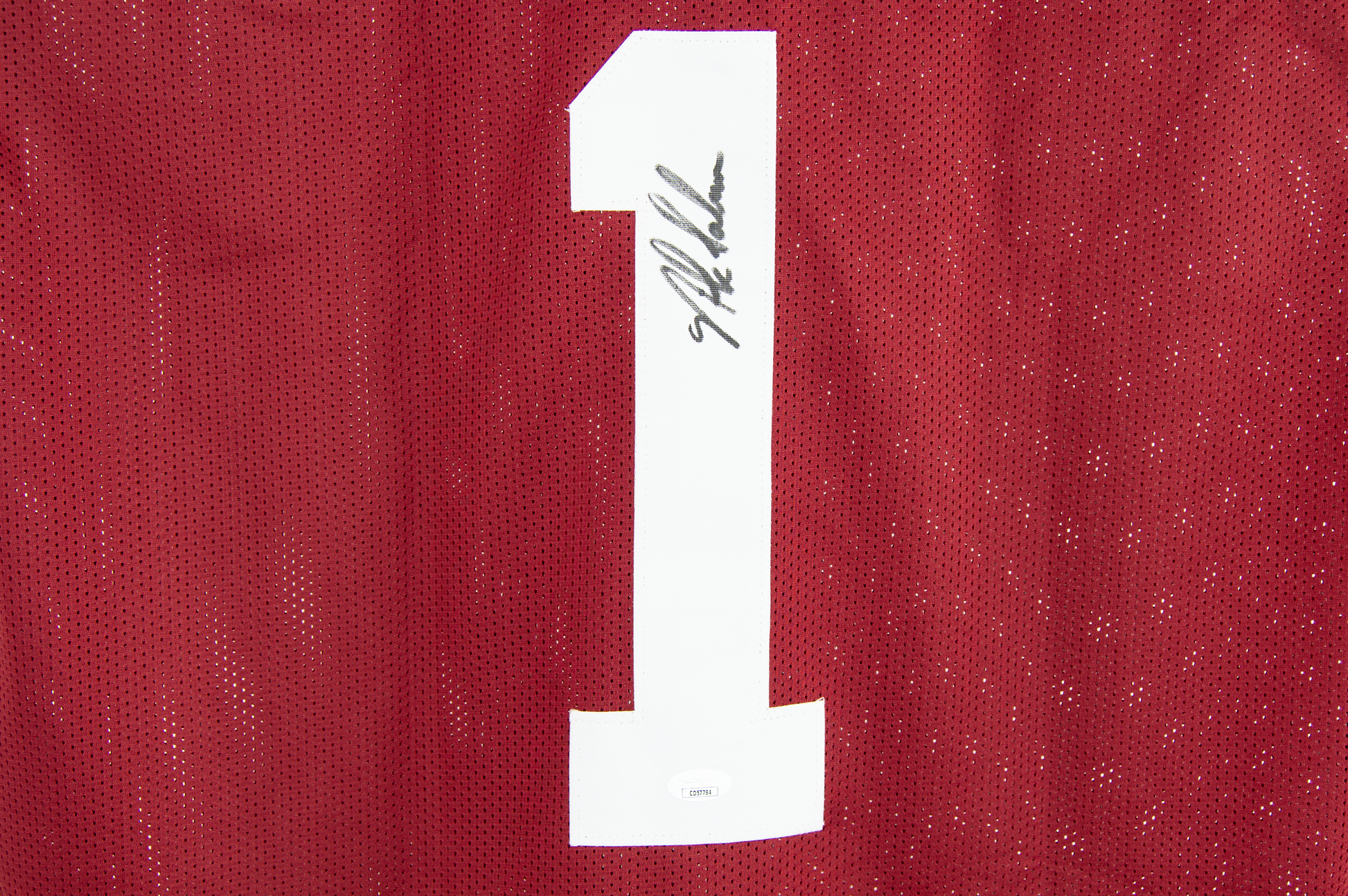 This Autographed Custom Crimson Alabama Jersey has been Personally Signed by Nick Saban of the Alabama Crimson Tide. It is 100% Authentic and includes a James Spence Authentication Numerical Sticker.