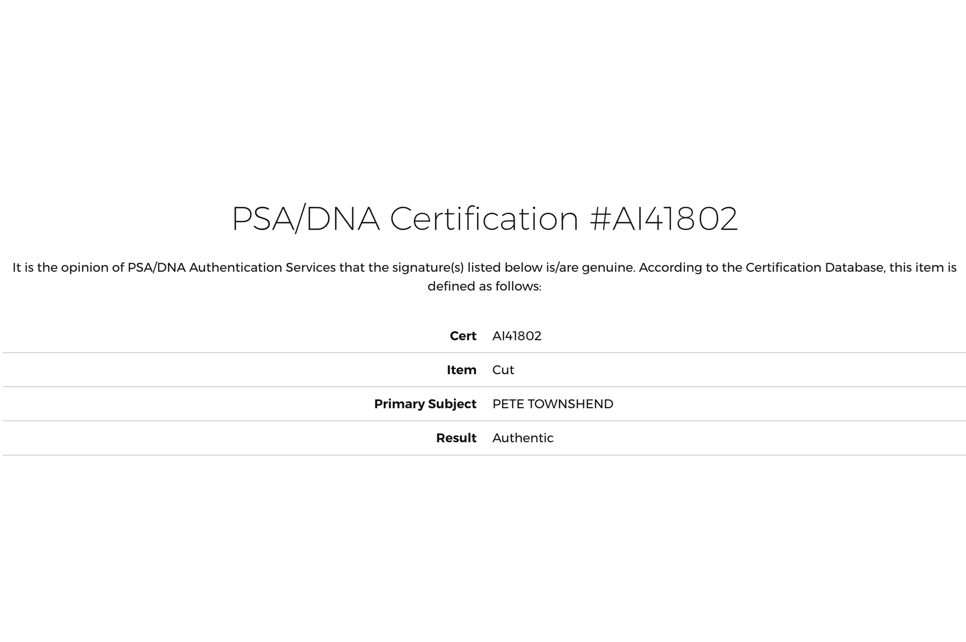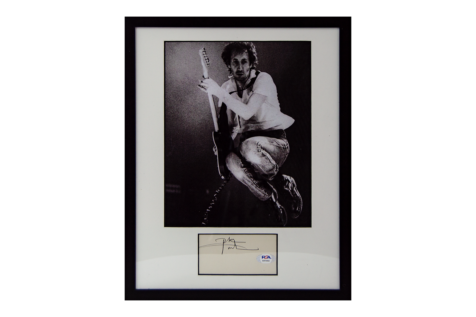 This Framed 12x15 Pete Townshend Cut Display features an index card Personally Signed by Pete Townshend of The Who. It is 100% authentic and includes a Professional Sports Authenticator Numerical Sticker.