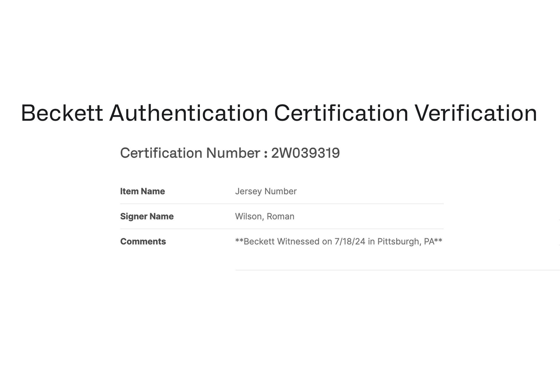 This Autographed Black Pittsburgh Custom Jersey has been Personally Signed by Roman Wilson of the Pittsburgh Steelers. This item is 100% Authentic and includes a Beckett Authentication Scannable QR Code and numerical and sticker. This item was witnessed on 7/18/24 in Pittsburgh, PA.