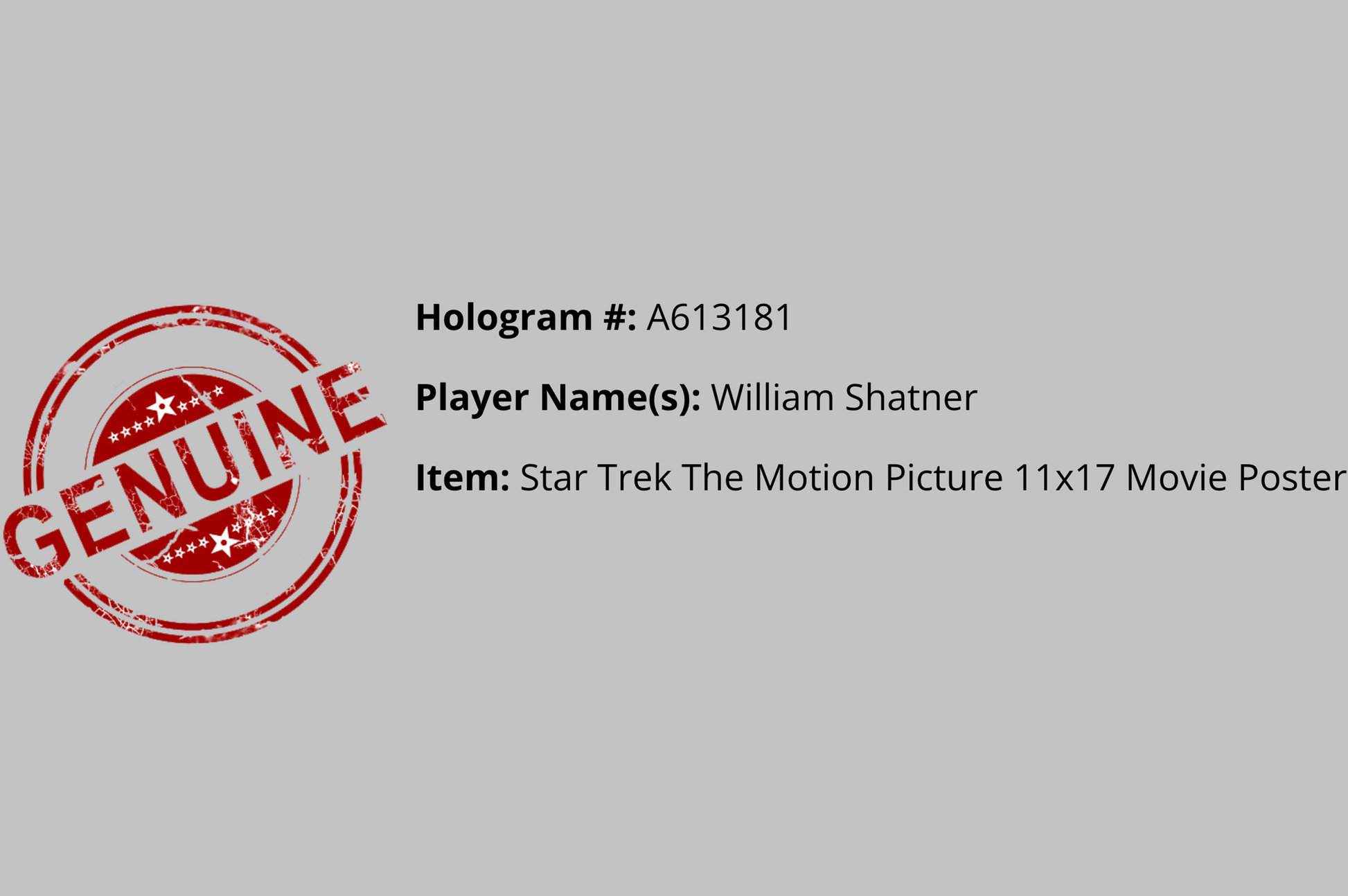 This Autographed 11x17 'Star Trek: The Motion Picture' poster has been Personally Signed by William Shatner. This item is 100% Authentic and includes a Schwartz Sports Numerical Authentication Sticker.